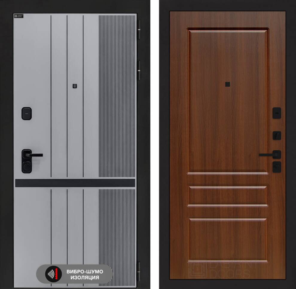| Отделка снаружи | Фрезерованная МДФ панель 10 мм, цвет "Веллюто Гриджио" с патиной и вставкой из металла в цвет наличника |