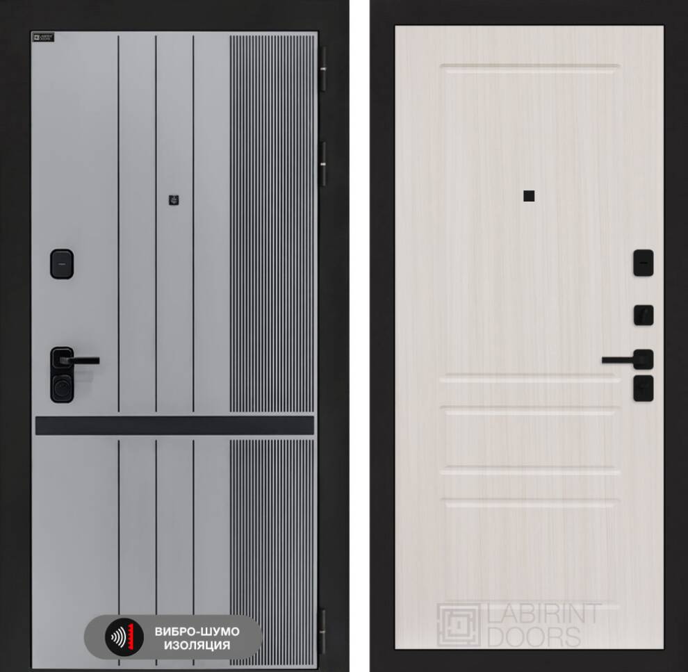 Отделка снаружи Фрезерованная МДФ панель 10 мм, цвет "Веллюто Гриджио" с патиной и вставкой из металла в цвет наличника