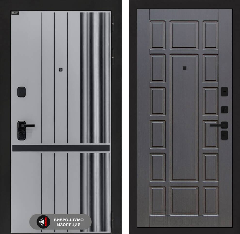 | Отделка снаружи | Фрезерованная МДФ панель 10 мм, цвет "Веллюто Гриджио" с патиной и вставкой из металла в цвет наличника |