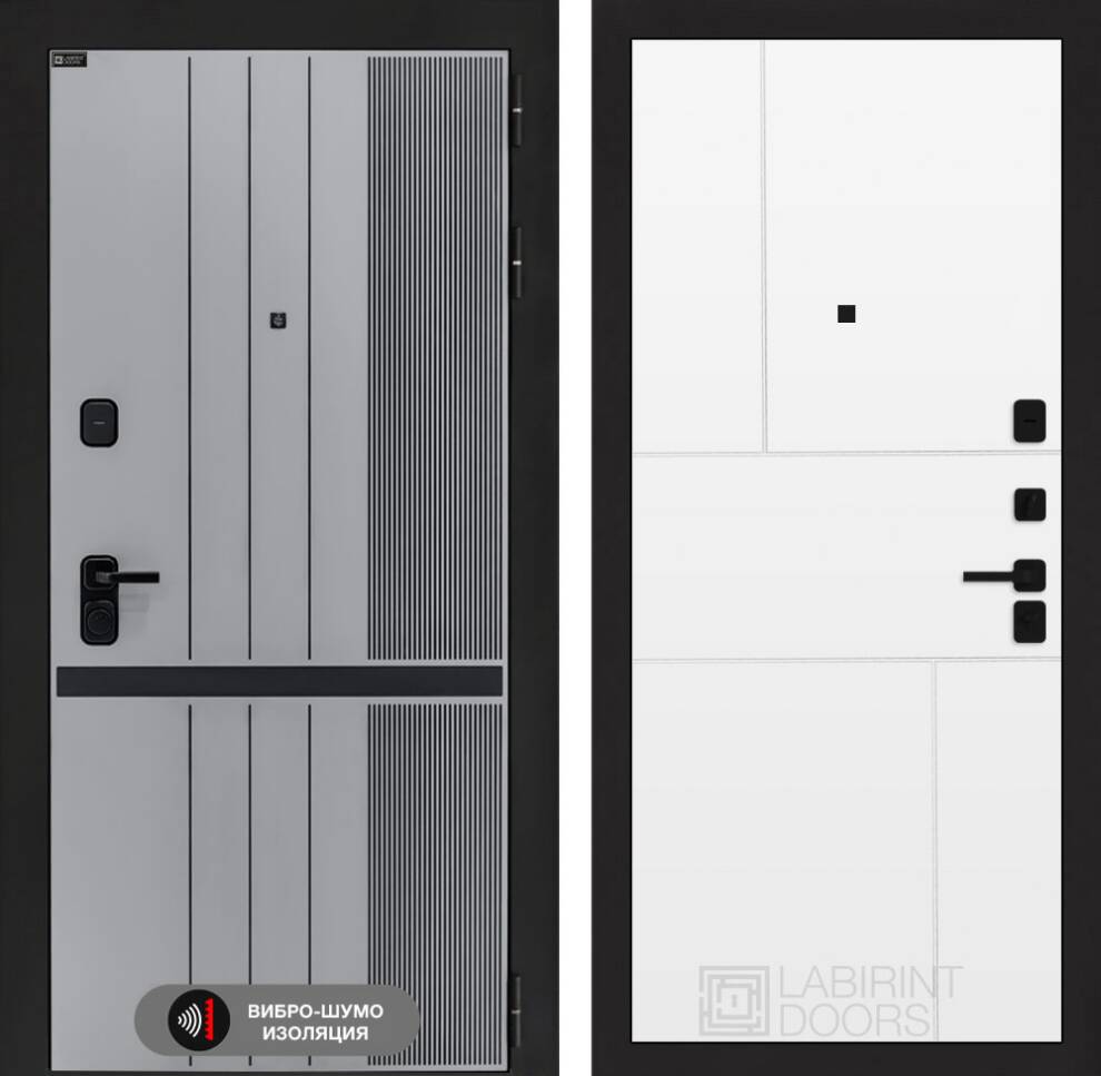 Отделка снаружи Фрезерованная МДФ панель 10 мм, цвет "Веллюто Гриджио" с патиной и вставкой из металла в цвет наличника