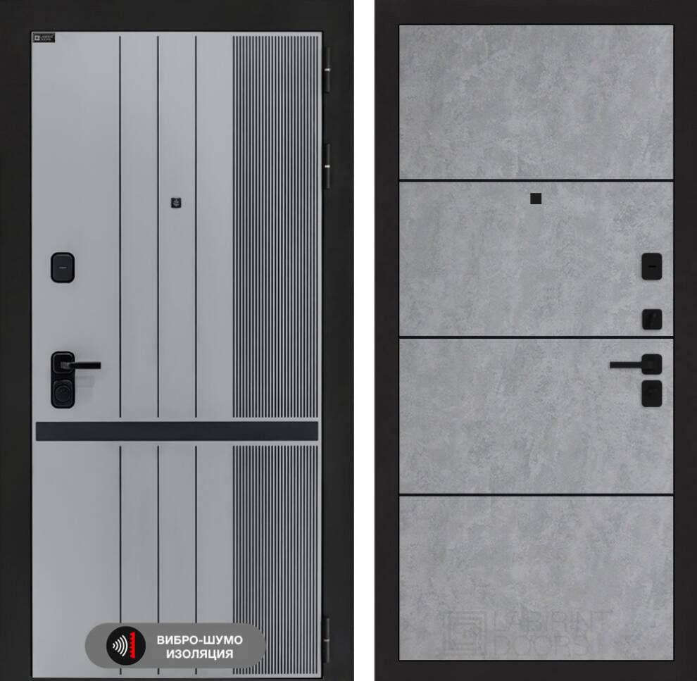| Отделка снаружи | Фрезерованная МДФ панель 10 мм, цвет "Веллюто Гриджио" с патиной и вставкой из металла в цвет наличника |