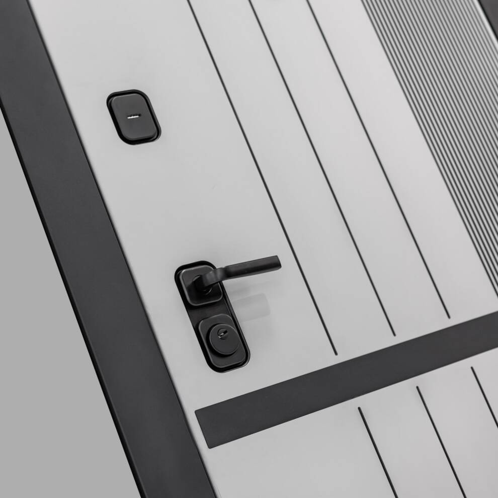 | Полный комплект | Фурнитура в черном цвете: Броненакладка врезная, накладка со шторкой, глазок , дверная ручка, ночная задвижка. Цилиндр ключ-вертушка (производитель не регламентируется), регулируемый эксцентрик. |