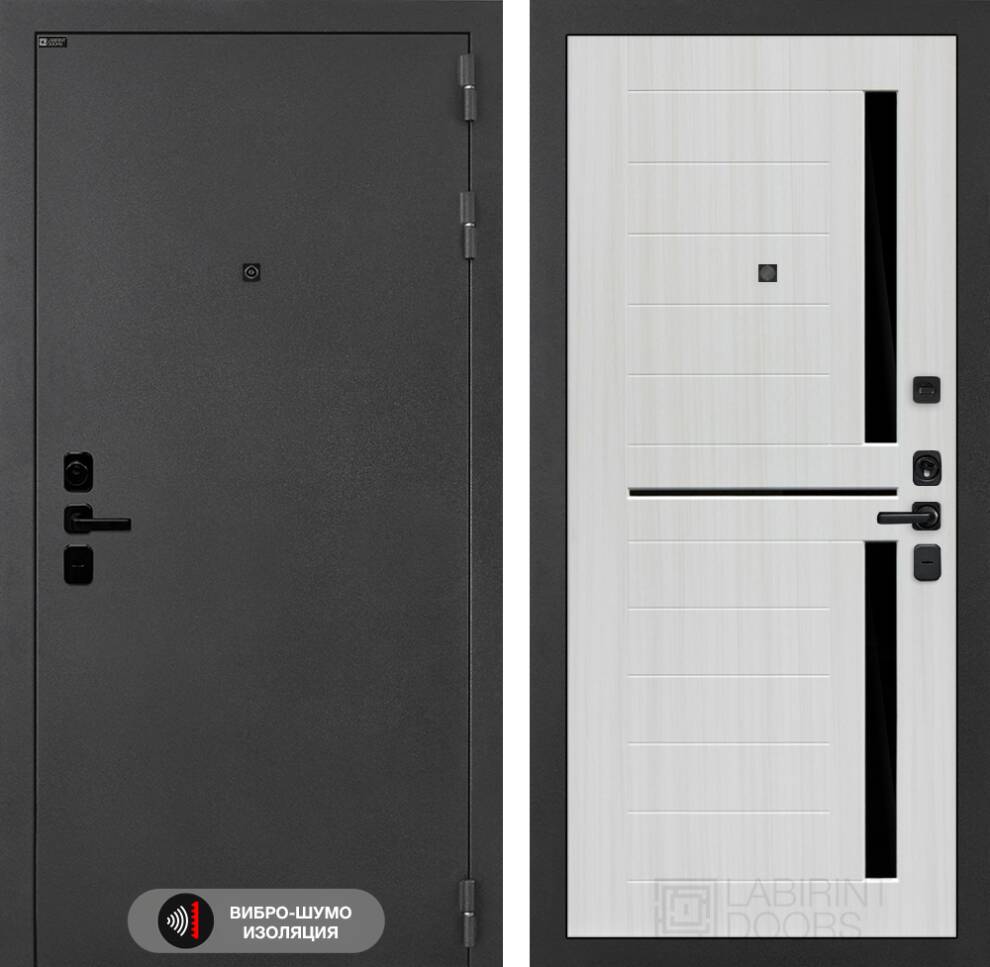 | Полный комплект | Фурнитура в черном цвете: Броненакладка врезная, накладка со шторкой, глазок , дверная ручка, ночная задвижка. Цилиндр ключ-вертушка (производитель не регламентируется), регулируемый эксцентрик. |