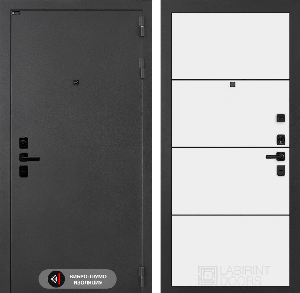 Входная дверь Соналаб 25 — Белый софт, черный молдинг
