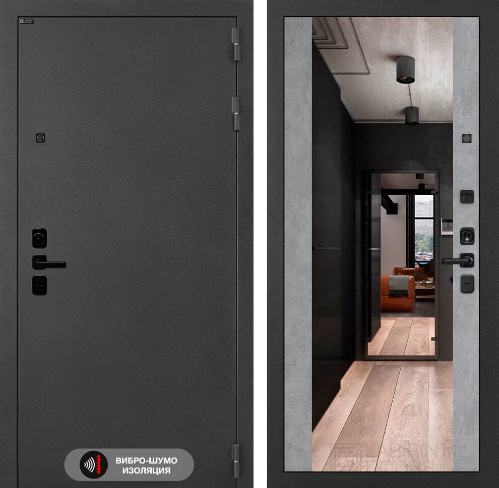 | Внутренняя отделка | Декоративная МДФ панель 12 мм с широким зеркалом, цвет "Бетон светлый" |