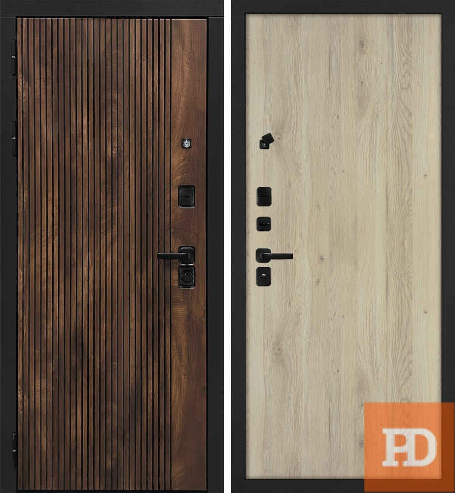 | Отделка снаружи | Фрезер. панель с выборкой под фурнитуру рис. Вертикаль , МДФ-10мм, цвет:Дуб коньяк с век. кольцами Наличник прямой мдф 70*10 мм - 2,5 шт, Черный ш |