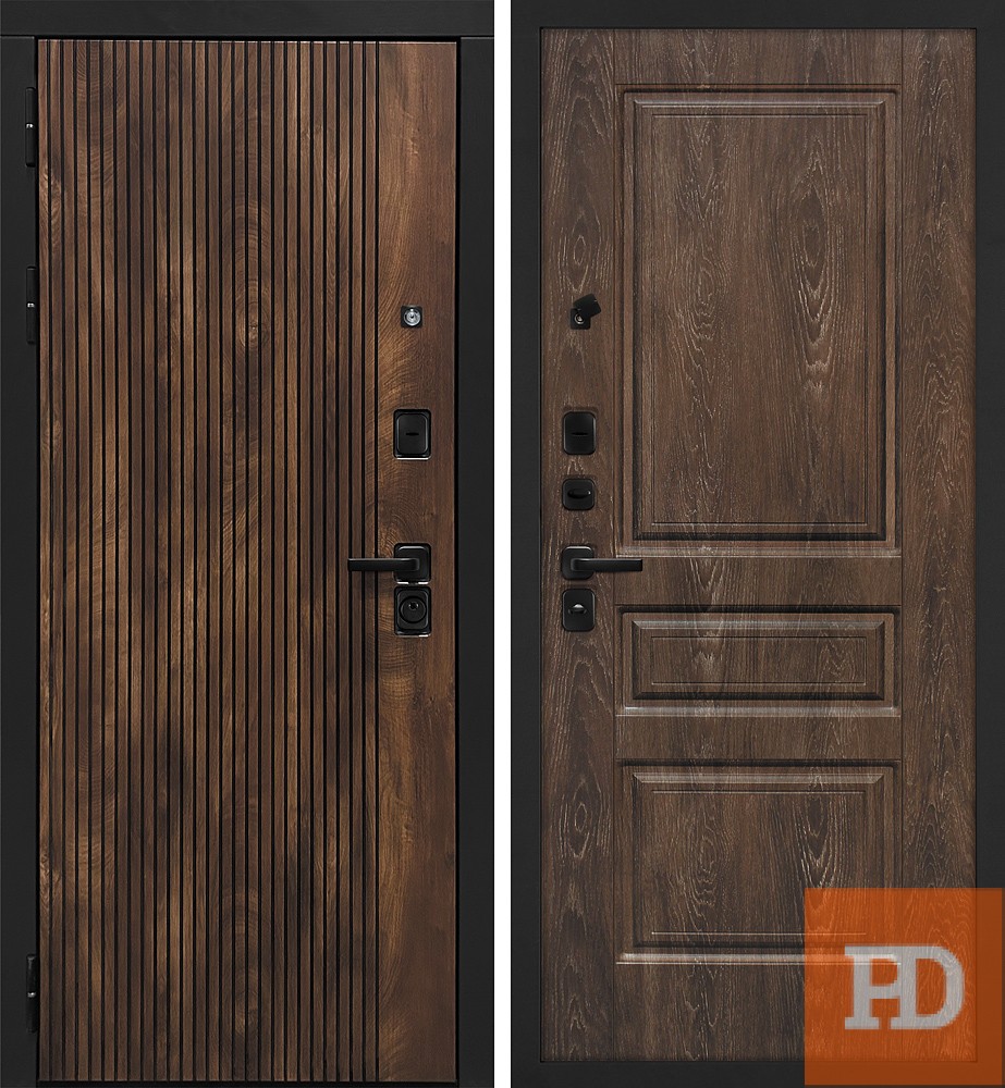 | Отделка снаружи | Фрезер. панель с выборкой под фурнитуру рис. Вертикаль , МДФ-10мм, цвет:Дуб коньяк с век. кольцами Наличник прямой мдф 70*10 мм - 2,5 шт, Черный ш |