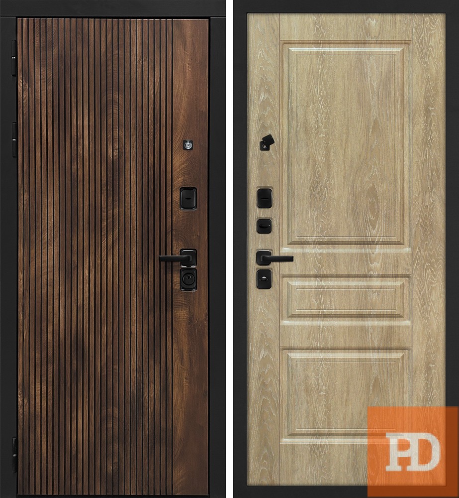 | Отделка снаружи | Фрезер. панель с выборкой под фурнитуру рис. Вертикаль , МДФ-10мм, цвет:Дуб коньяк с век. кольцами Наличник прямой мдф 70*10 мм - 2,5 шт, Черный ш |