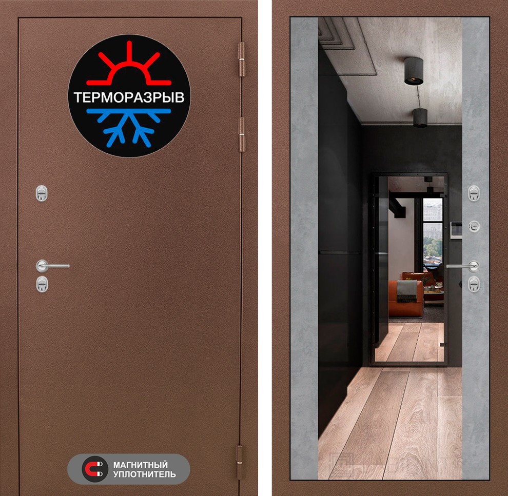 | Внутренняя отделка | Декоративная МДФ панель 12 мм с широким зеркалом, цвет "Бетон светлый" |