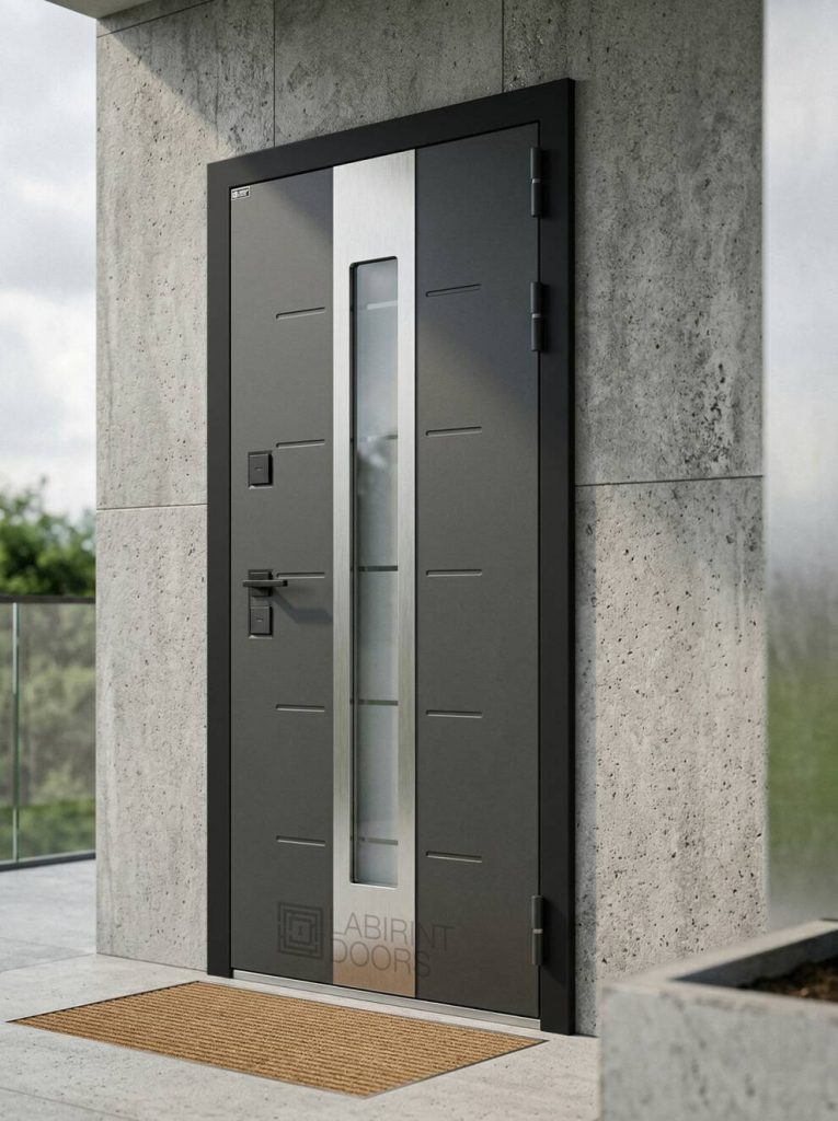 | Отделка снаружи | Влагостойкая МДФ панель 10 мм с фрезеровкой, цвет "Графит силк" (износостойкое покрытие) с отделкой из шлифованного хрома |